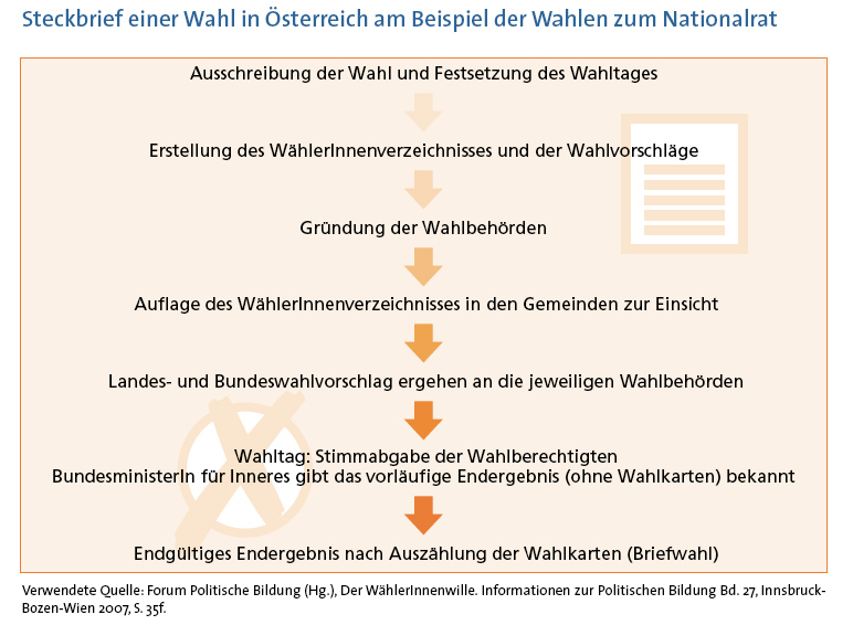 Für die Kandidatur als Abgeordnete/r zum Nationalrat muss man außerdem entweder auf der Landesparteiliste eines Bundeslandes bzw. auf der Regionalparteiliste eines Regionalwahlkreises angeführt sein, die dann als Wahlvorschlag von der jeweiligen Partei für die Wahl vorgeschlagen wird. Diese Parteilisten können dann von den WählerInnen gewählt werden. Dabei ist es möglich, einen Kandidaten/eine Kandidatin aus der Landesparteiliste auf dem Stimmzettel namentlich anzuführen bzw. den Favoriten/die Favoritin aus der Regionalparteiliste anzukreuzen und somit jenen KandidatInnen eine Vorzugsstimme zu verleihen. Je nach Stimmverteilung werden dann in einem dreiteiligen Ermittlungsverfahren die Mandate der wahlwerbenden Gruppen im Nationalrat verteilt.