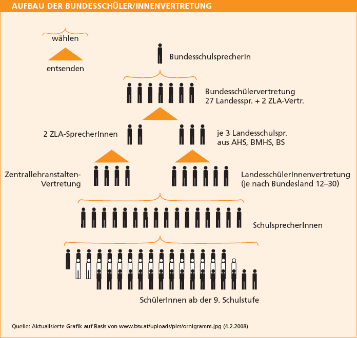 Im Schülervertretungengesetz (SchVG) ist festgelegt, dass es für einige Schultypen in jedem Bundesland eine LandesschülerInnenvertretung und für ganz Österreich eine BundesschülerInnenvertretung gibt.