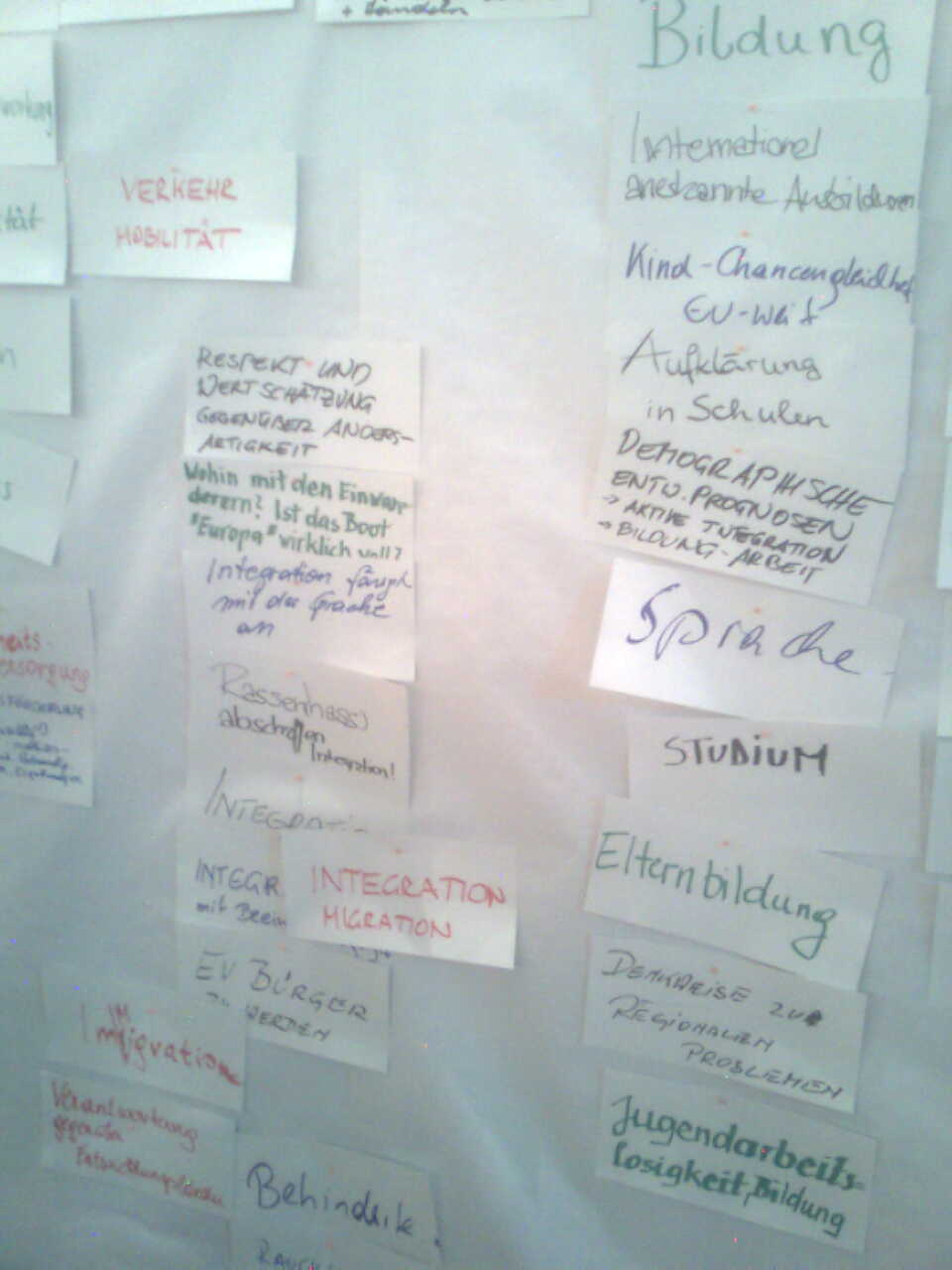 Nach einer Kaffeepause werden nun Meinungen zu folgenden Fragen eingeholt und besprochen: